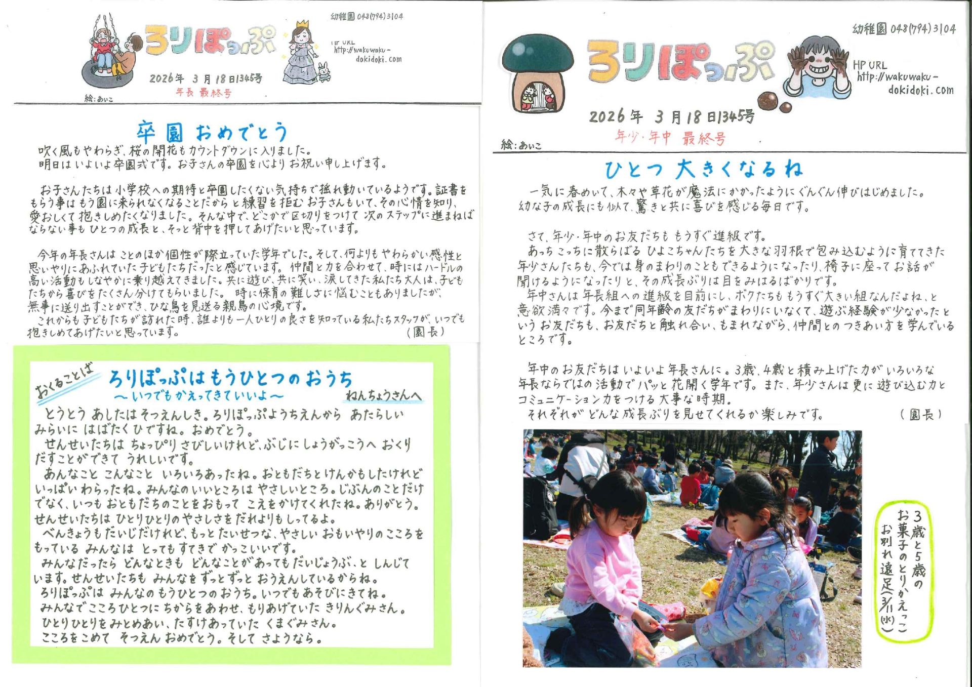 卒園おめでとう(長) ひとつ大きくなるね(少・中)